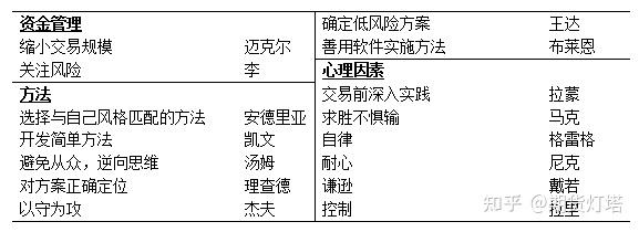 在本部分,作者总结了十五位市场大师给怀揣梦想的交易者提出的建议,让读者能够近距离的了解这些成功交易者的思想,篇幅所限,在这里仅做总结。