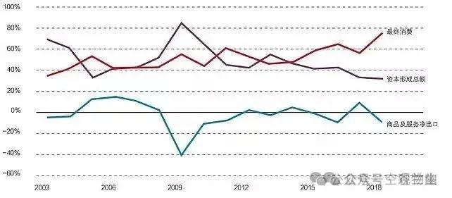 中国2003—2018年最终消费、投资和商品及服务净出口对GDP增长的贡献率
