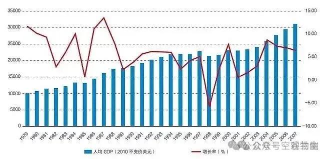 中国香港1979—2007年经济增长率及人均GDP(2010年不变价美元)