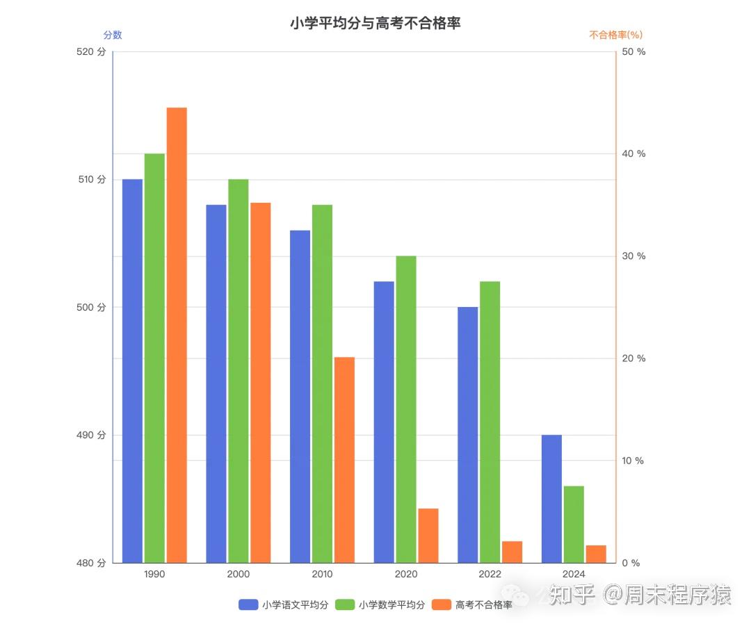 虽然这些数据来自较晚时期,但《以日为鉴》认为其根源可追溯至 1990 年代教育资源收缩与教师职业倦怠的长期影响。 高考竞争格局的逆转同样值得关注,1990 年日本高考不合格率达到顶峰 44.5%,当年 88.7 万考生中仅有 39.5 万人成功入学;而到 2022 年,高考不合格率仅为 1.7%,形成 “全员都能上大学” 的局面,这种变化一方面反映了少子化带来的升学压力缓解,另一方面也印证了《以日为鉴》提出的 “学历贬值” 现象 —— 高等教育普及与就业市场萎缩的叠加,使得教师群体面临的教育目标与社会需求之间的矛盾日益突出。