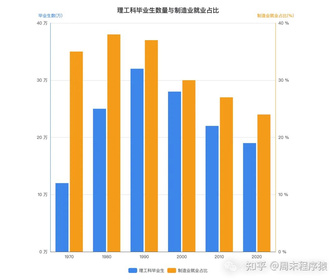 日本从80年代开始提出科技立国,加速高校大量扩招,每年都大量理工科涌入社会,同时文科生很难找到工作;
