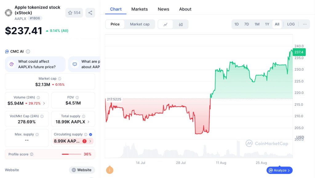 特别需要注意的是,链上股票的「价格」,并不一定会时时刻刻都和传统交易所完全一致。 虽然代币背后可能有真实资产或价格追踪机制,但因为交易环境、结算方式以及市场参与者的差异,两边的价格经常会出现落差。 (也因此有套利的空间)
