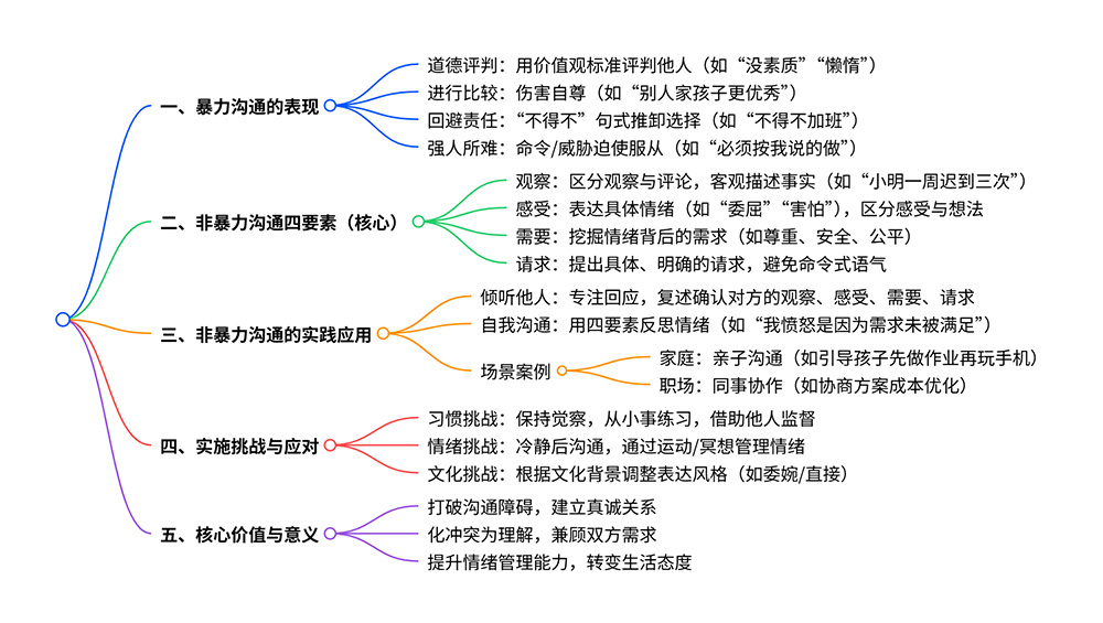 以上读书笔记涵盖了《非暴力沟通》的关键要点与实践方法。