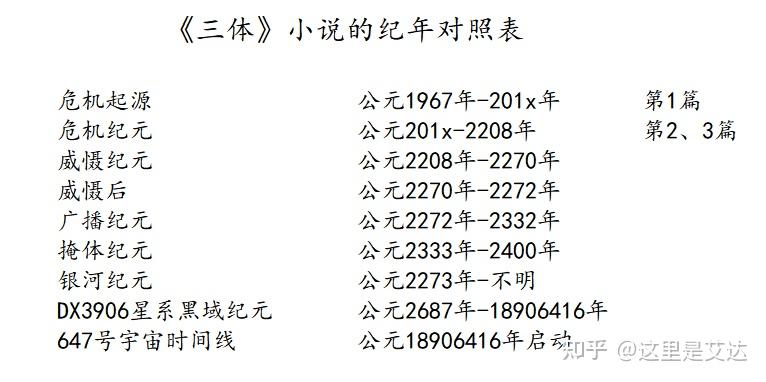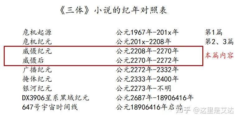 为了按照小说中出现的时间线去梳理故事,在叙述过程中并没严格按照作者的讲述顺序进行,而是在罗辑的故事开始之前,先插播了一下原本出现在《三体III》第一部——程心在危机纪元1-7年的经历。