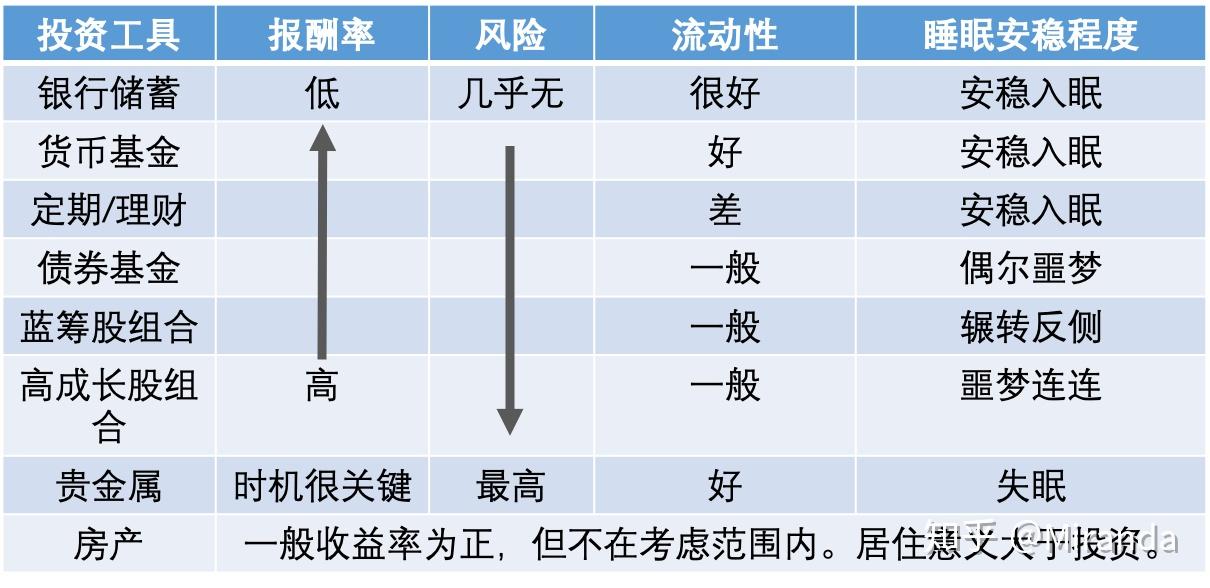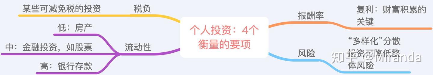 利用投资四要素(报酬率,风险,流动性,税负)来衡量如何在各类投资品中取舍: